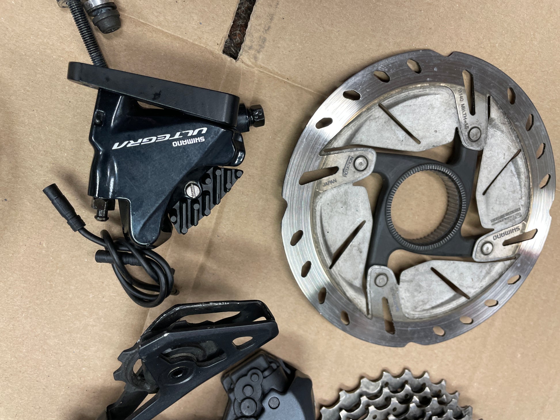 Brake ultegra 8070 hydraulic calipers with pads (hoses cut out) with adapters 160mm (with bolts to frame